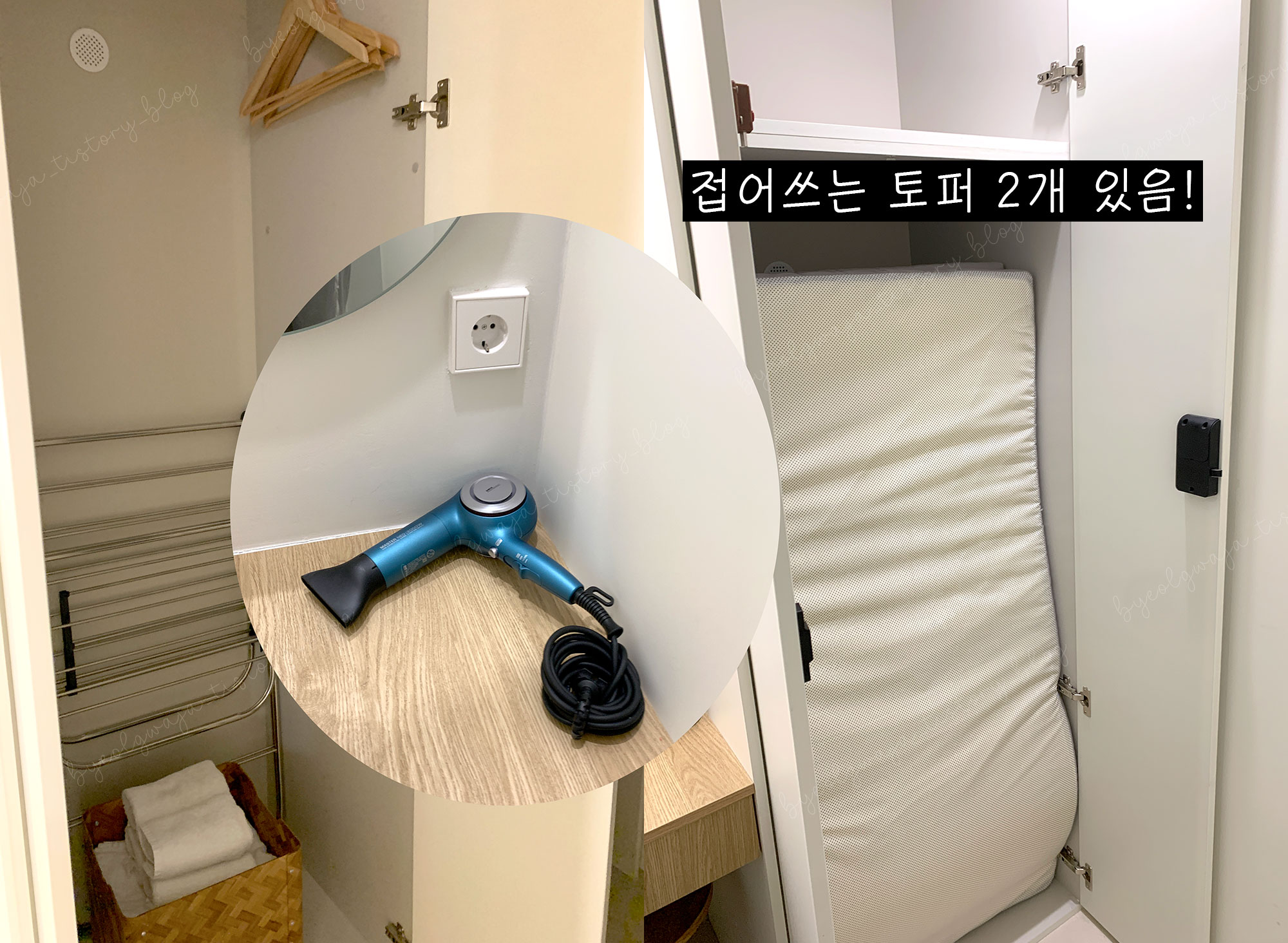 그 옆 옷장에는 접어쓰는 토퍼가 두개 들어가있었고, 꺼내기 좀 힘들었어요^^..