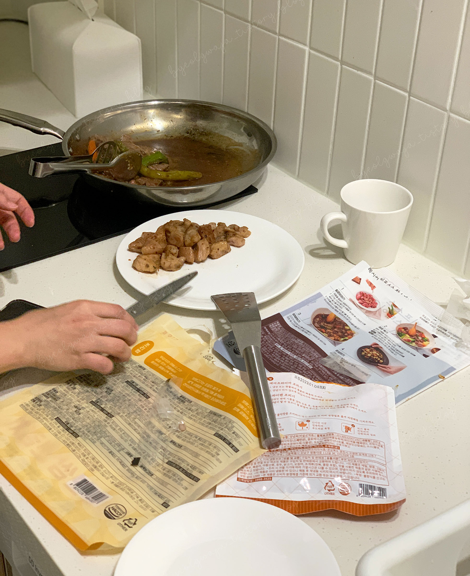 저는 일행들과 미리 사온 밀키트들로 요리했습니다.